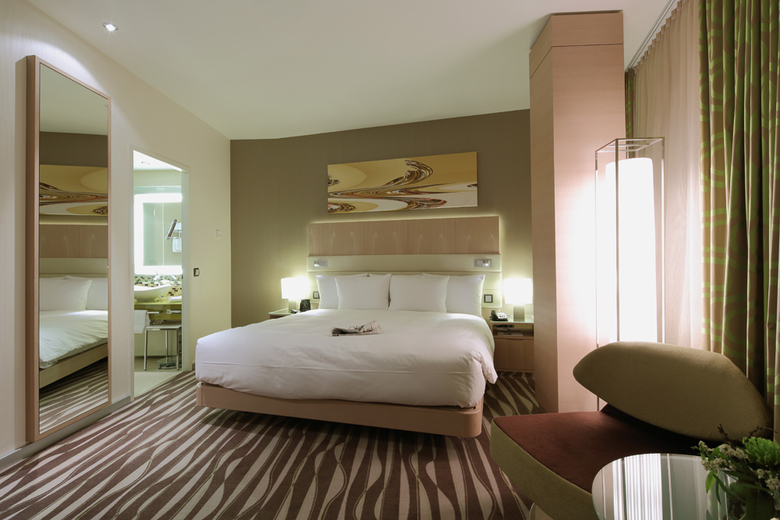 Im Zimmer angekommen steht Entschleunigung pur im Vordergrund. Eingebettet in warmen Beigetönen kann der Gast hier das laute Verkehrsumfeld hinter sich lassen und zur Ruhe kommen. Nur ganz dezent greifen die Wellen im Teppich oder die abstrahierten Motive der Bilder Symbole der Mobilität wieder auf. Zentrales Element ist der bequeme, modern umgesetzte Ohrensessel, der wohlige Heimeligkeit ausstrahlt. Auch die hellen Bäder sorgen mit ihren warmen Farbakzenten für Entspannung.