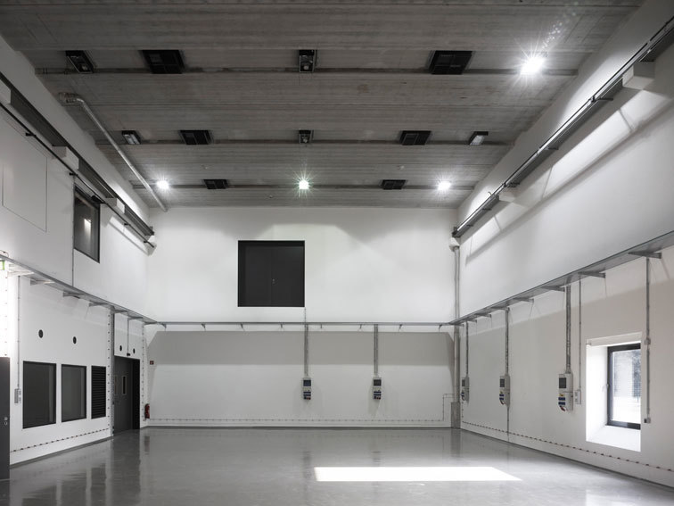 Der Zusammenbau von Kompaktsatelliten und anderen Raumfahrtgeräten erfordert hoch spezialisierte Laboreinrichtungen- und räume. Neben hochtechnisierten Entwicklungs- und Testlabors werden Reinräume und Werkstätten im Bereich der Systemtechnik benötigt. Auch das Äußere des Gebäudes zeugt von technischer Innovation: ähnlich einem Hitzeschild erhält die Fassade eine Hülle aus rautenförmig angebrachten Keramikfliesen.