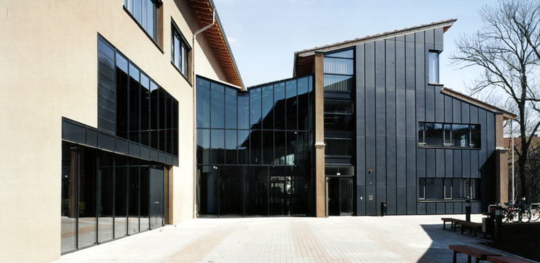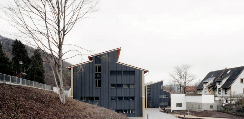 Auf dem Gelände der ehemaligen Papierfabrik entstand das neue Zentralgebäude der Hochschule Harz. Der zweigeschossige Neubau greift auf die Struktur der abgebrochenen Fabrik zurück: Zwei langgestreckte, teils holzverschalte Gebäuderiegel sind durch eine zentrale Glashalle verbunden. Als Hauptgebäude nimmt der Neubau alle zentralen Einrichtungen des Campus auf. Neben Audimax, Rechenzentrum, Medien- und Sprachenzentrum prägt vor allem die lichte, zweigeschossige Bibliothek mit ihren 100.000 Bänden die Hochschule. Zusätzlich haben die Fachbereiche Medieninformatik und Automatisierung mit ihren Labor- und Seminarräumen in dem Gebäude eine neue Heimat gefunden.