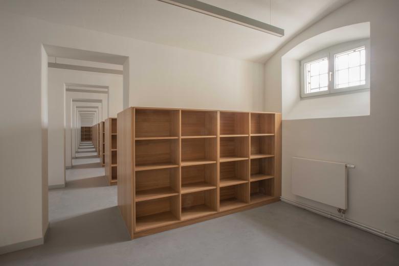 Der besondere denkmalpflegerische Fokus liegt auf den beiden straßenseitigen Fassaden einschließlich der Kastenfenster und Fenstergitter. Aufgrund der bauphysikalischen Anforderungen und den Sicherheitsbelangen der Staatsanwaltschaft werden die inneren Fenster durch neue ersetzt, die den heutigen Anforderungen entsprechen. Die äußeren, straßenseitigen Fenster sowie deren Gitter bleiben erhalten und werden saniert. Die Außenwände werden durch einen Innendämmputz energetisch optimiert.