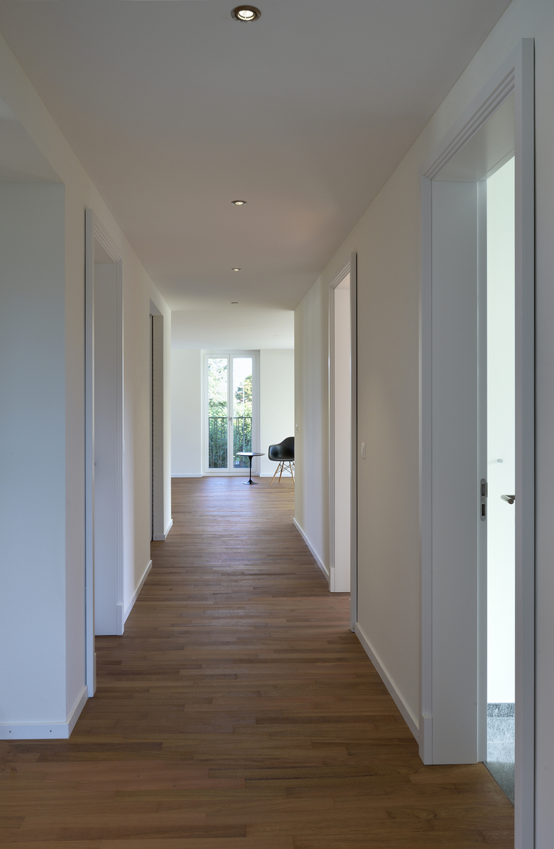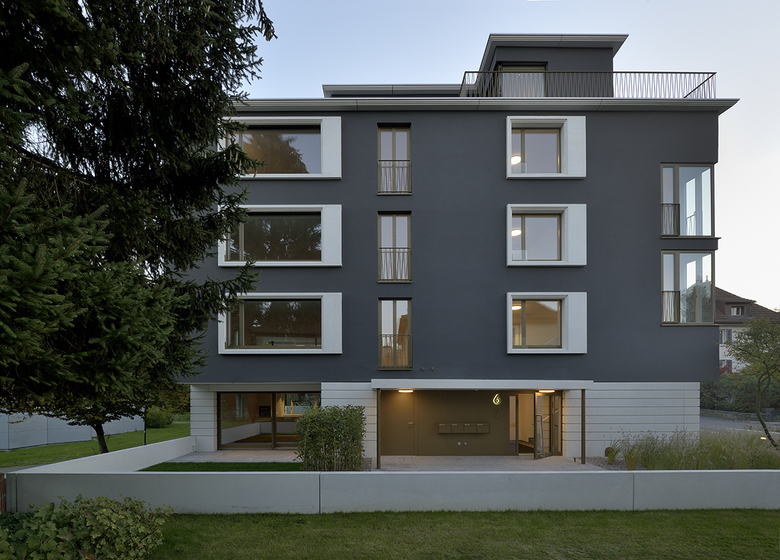 Ziel der Architekten war es, eine wohnliche Architektur zu schaffen, in deren Fokus die Bedürfnisse der realen Nutzer stehen. Das Gebäude und seine Umgebung sollten sowohl einen modernen, zukunftsfähigen Gesamteindruck vermitteln, als auch klassische Werte und Traditionen beinhalten. Material und Farbe für Gebäudehülle, Innenausbau und Umgebung wurden sehr sorgfältig ausgewählt und aufeinander abgestimmt. Das Gebäudevolumen und die Aussenräume wurden präzise auf den Ort bezogen definiert. Das Mehrfamilienhaus hat mit seiner Umgebung den Anspruch einer gestalterisch wie auch funktional langfristig beständigen, niveauvollen Wohnbauarchitektur.