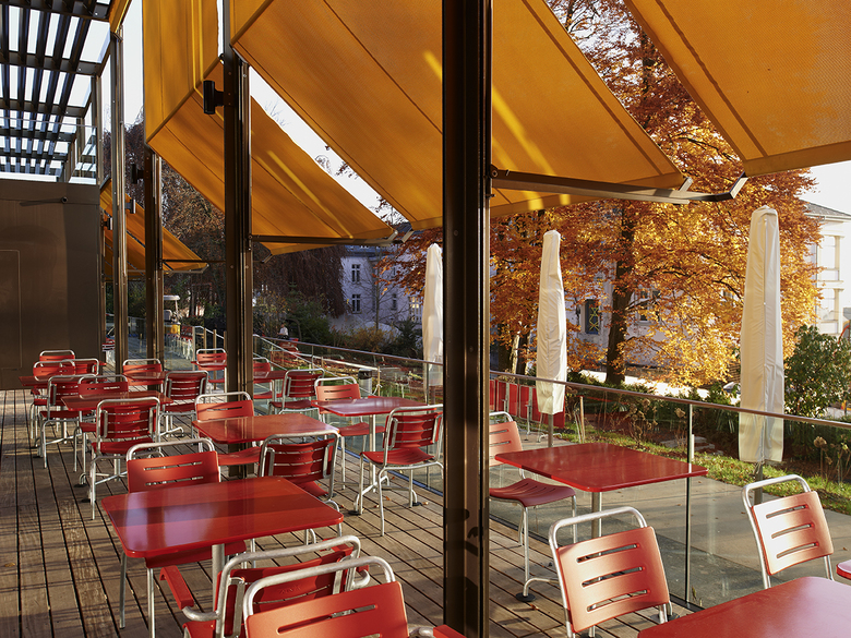 Das Zusammenspiel der Architektur mit den am Bau integrierten Lichtzeichen, Farben und Formen der Künstlerin Marguerite Hersberger verleihen dem Gebäude eine unverkennbare Identität.