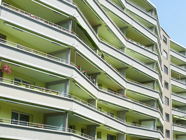 Für die Vergrösserung der Balkone fanden wir eine Lösung, die sowohl funktional als auch ästhetisch überzeugt. Mit grossen Betonfräsen wurden die bisherigen schmalen entlang der Westfassade verlaufenden Balkonbänder vollständig entfernt. Wie bei den Raumzellen für die Küchen fand auch hier für den Ersatz der Balkone ein System von vorfabrizierten Betonteilen Anwendung.
