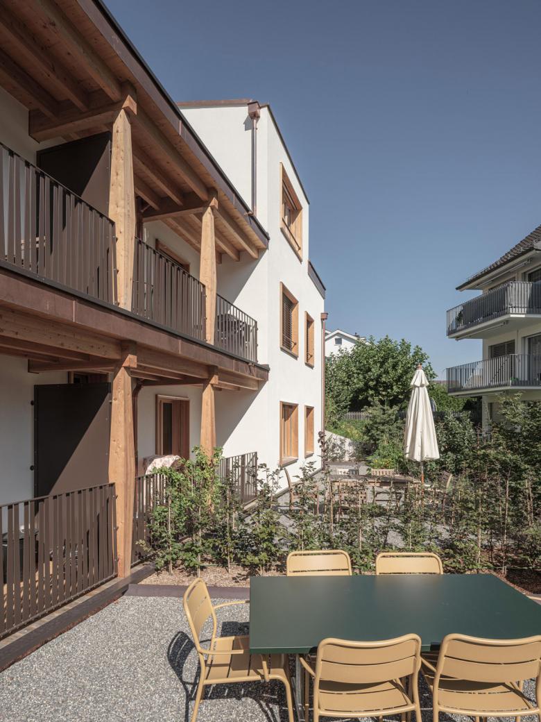 Unser Projekt soll sich architektonisch selbstverständlich in die Kernzone von Erlenbach einfügen. Das Wohn- und Geschäftshauses mit 6 Businesswohnungen und 2 Gewerbelokalen, ist der Analogie des Kontextes entsprechend, als murales Wohnhaus mit Lochfassade gestaltet. Fenstereinfassungen und Aussenraumkonstruktionen in Holz, zeichnen sich bewusst auch in der äusseren Fassadengestaltung ab und sollen einen stimmungsvollen architektonischen Gesamtausdruck vermitteln.