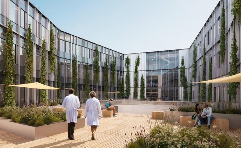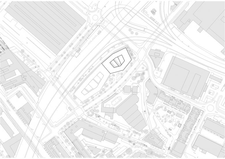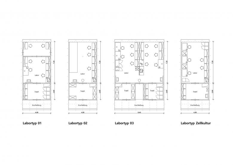 Das architektonische Konzept zeichnet sich durch eine klare volumetrische Komposition aus, die das groß angelegte Programm in die umgebende Stadtstruktur integriert. Eine kompakte Gebäudeform sorgt für effiziente Verkehrswege und kurze interne Verbindungen und ermöglicht gleichzeitig flexible Grundrisse für Labore und Arbeitsräume.