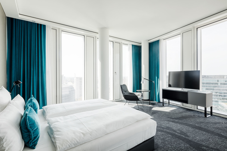 Das UPPER WEST in Berlin gliedert sich in zwei Gebäudeteile. Ein 8-geschossiges Büro- und Geschäftshaus mit Einzelhandelsflächen öffnet sich in Richtung Breitscheidplatz und Kurfürstendamm. Direkt daran angeschlossen ist der 35-geschossige Hochhausturm mit Hotel- und Büronutzung sowie einer Skybar mit gehobener Gastronomie im 32.OG. In den Untergeschossen befindet sich eine Parkgarage mit ca. 100 Stellplätzen. Architekt für den städtebaulichen Entwurf und die Fassadenplanung ist Christoph Langhof, Berlin. KSP ENGEL Architekten, Berlin, wurden für die Entwurfs- und Objektplanung beauftragt.