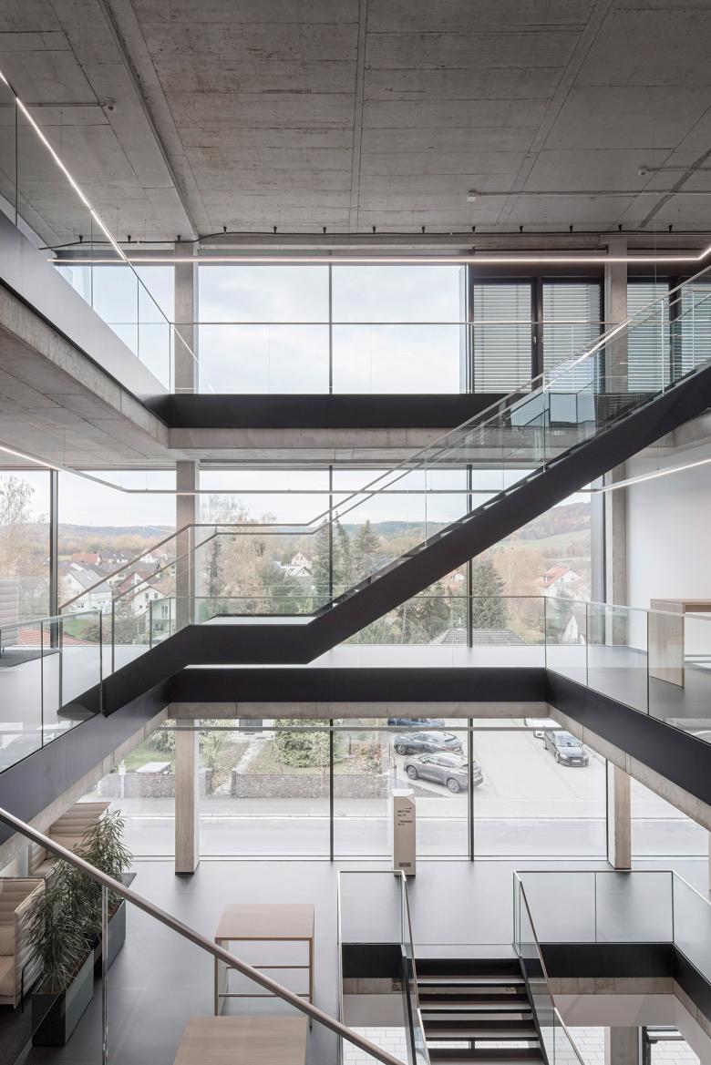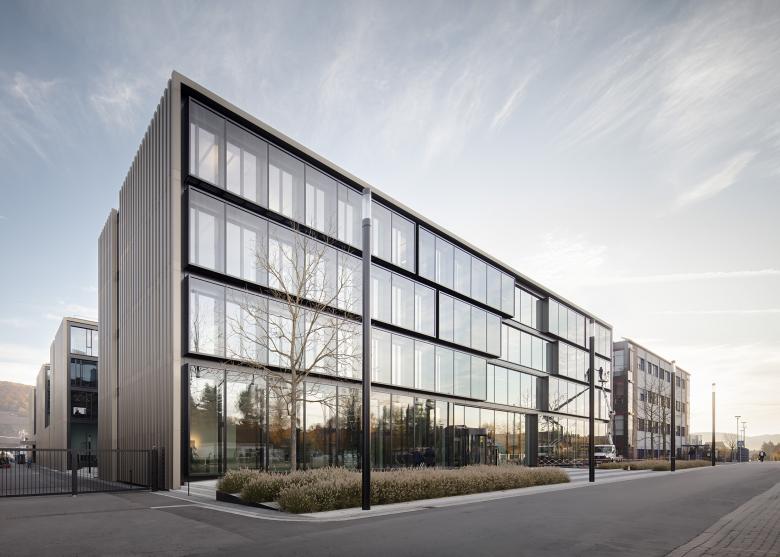 Klare Strukturen, Treffpunkte, Sichtbeziehungen zwischen den Abteilungen und Ausblicke in die landschaftlich reizvolle Umgebung: All das bietet das neue WIKA-Entwicklungszentrum in Klingenberg am Main. In diesem Komplex sind alle Abteilungen integriert, die am Innovationsprozess für Produkte und Lösungen beteiligt sind; sogar Labore und Maschinenpark. Flexible Bürostrukturen unterstützen das Konzept der kurzen Wege und der effektiven Kommunikation. Die kammförmige Gebäudestruktur lässt Ausblicke in die Weinberge zu und schafft damit eine attraktive Verbindung von Natur, Architektur und Technik. Der Eingangsbereich ist Foyer, Versammlungs- und Ausstellungsfläche in einem. Der sogenannte Marktplatz bietet als Präsentations- und Eventfläche genügend Raum zum Austausch, für Mitarbeitertreffen und Veranstaltungen. Gleichzeitig ist er Showroom für die Entwicklungen des Unternehmens. Auch die 2.800 Quadratmeter große Produktionshalle lässt sich von hier aus einsehen.