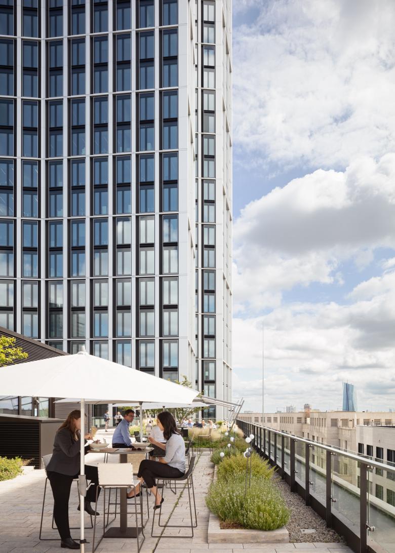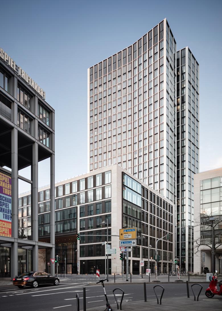 Der 110 Meter hohe WinX Tower erschließt neue Dimensionen der Hochhausarchitektur. Als fortschrittlichster seiner Art vereint er elegante Formgebung, intelligente Raum- und Energieplanung mit modernster Ausstattung. Aufgrund seiner innovativen Bauweise unter Einsatz modernster Technologien schafft er eine angenehme Arbeitsatmosphäre: Alle Etagen bieten Flächen mit flexiblen Grundrissen für unterschiedlich große Büroräume. Hohe Decken von bis zu 2,91 Meter im Regelgeschoss schaffen ein großzügiges Raumgefühl. Die bodentiefen und raumhohen Fenster sorgen durch viel Tageslicht für sehr angenehm ausgeleuchtete Räume. Der Lichteinfall kann in jedem Büro individuell durch Sonnen- und Blendschutz reguliert werden. Aufgrund der nachhaltigen Gebäudeplanung mit Öffnungsflügeln in jeder zweiten Gebäudeachse ist eine natürliche Belüftung außerdem im gesamten WinX Tower möglich. Das Hochhaus mit einer Fassade aus Glas und hell eloxierten Aluminium-Paneelen basiert auf einem X-förmigen Grundriss. Dem Hochhaus ist das 7-geschossige Portalgebäude mit heller Naturstein-Fassade vorgelagert.