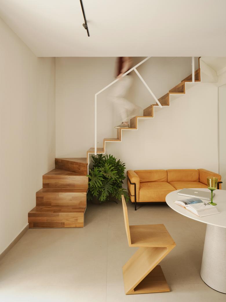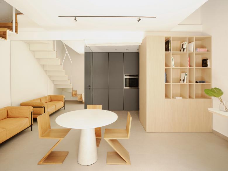 Il progetto riconfigura un piccolo appartamento su due livelli, collocato al piano terra di un palazzo storico nel Centro di Palermo, il cliente ha richiesto di organizzare un punto di appoggio vivendo fuori ma lavorando abitualmente in Città, prevedendo delle esigenze minime per un soggiorno costante ma temporaneo.