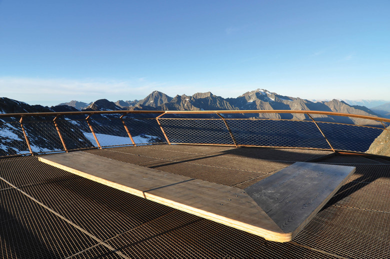 Der Große Isidor steht zentral im Stubaier Gletscher und teilt das Skigebiet in einen westlichen und östlichen Teil. Erst durch die Erschließung ist ein Rundumblick auf den gesamten Gletscher und 109 Dreitausender der Tiroler Alpen möglich geworden. Die Plattform eröffnet aber auch einen durchaus kritischen Blick auf Klimawandel und Gletscherschmelze. Durch Inszenierung und Überzeichnung der vorhandenen Topografie entsteht aus Landschaft geformte Architektur - künstliche Landschaft - sie vermittelt zwischen Dynamik und Statik und ist Teil ihrer Transformation. Eine Konstruktion in Wechselwirkung mit der Landschaft, sie beeinflussen und prägen sich gegenseitig. Die Aussichtsplattform am Isidor ist Zeichnen im Schnee, ist Architektur als Gratwandler. Weg und Plattform liegen im brüchigen Fels, sechs Monate im Jahr werden die Lamellen im Schnee verschwinden. Nur die über der Nordwand auskragenden Schwerter bleiben das ganze Jahr über sichtbar.