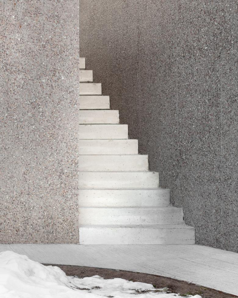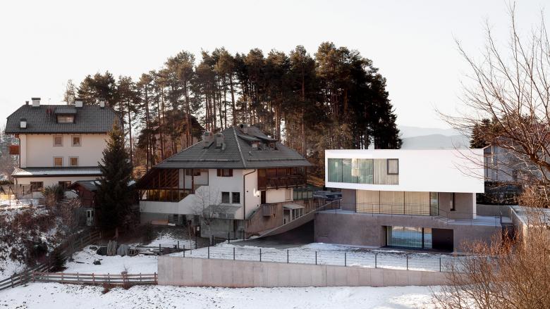 Retaining walls and parts of the building transform the topography of the property. Garden and living spaces on different levels connect through stairs and ramps. Surrounding and building adhere to each other.
