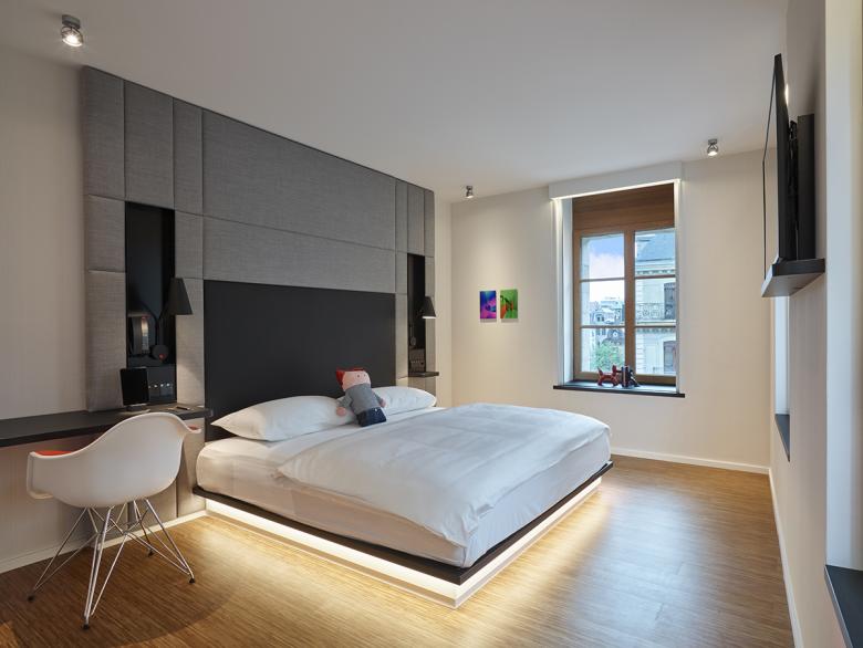 Die Zimmer sowie die öffentlichen Bereiche des Hotels im Erdgeschoss entsprechen den Design Standards von CitizenM. Sie ermöglichen ein schönes Ambiente zu einem guten Preis. Daher ist ein Grossteil der Zimmer sehr kompakt ausgeführt. Die rollstuhlgängigen Zimmer sind in der Dimension herkömmlichen Hotelzimmern entsprechend.