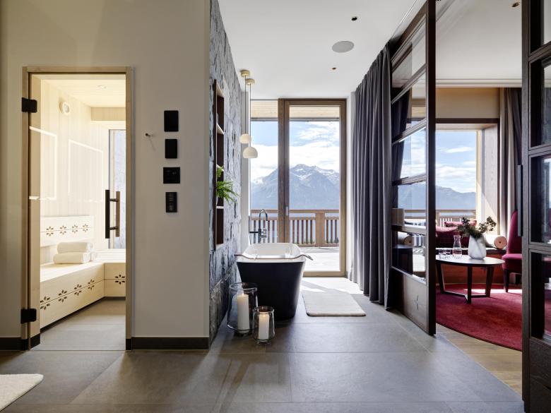 Das Highlight sind die grossen Terrassen mit dem freien Ausblick auf die traumhafte Bergwelt. Und auch im Inneren der neuen Suiten prägt die Landschaft dank grosser Panoramafenster die Atmosphäre.