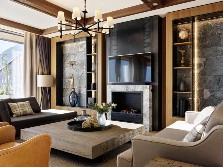Insgesamt präsentieren sich die Räume und Bäder sehr offen und grosszügig. Hochwertige Materialien wie Eichenböden und ausgesuchter Naturstein verleihen dem neuen Interieur eine edle und zugleich frische Erscheinung. Die natürliche Struktur der Materialien sorgt für eine lebendige Haptik, die mit traditioneller Handwerkskunst kombiniert und durch erdige Naturfarben und zeitlos gehaltenes Mobiliar abgerundet wird.