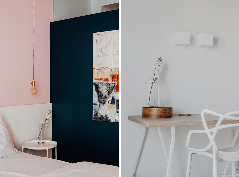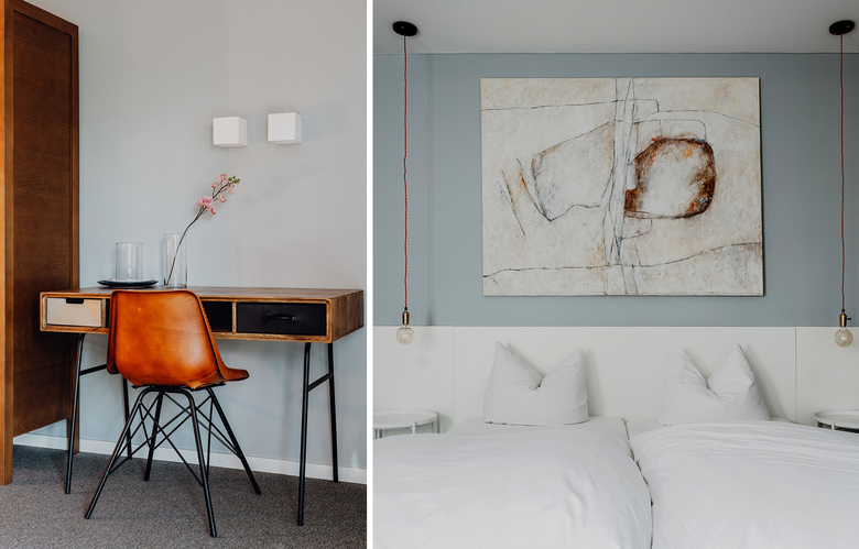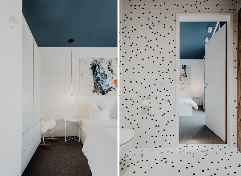 Die „Prayer Homes“ genannten Gästezimmer in den weißen Kuben ermöglichen das Wohnen auf Zeit. Ähnlich einem Kloster bietet das Gebetshaus seinen Gästen die Opportunität für einen selbst gewählten Zeitraum eine Auszeit aus dem Alltag zu nehmen, um im Gebet und der Kontemplation die Gegenwart Gottes zu suchen. Jedes einzelne „Prayer Home“ hat sein eigenes individuelles Gestaltungsthema. Die Grundlage für die Zimmergestaltung bildeten jeweils die Bilder und Kunstwerke, von denen sich die jeweilige Farbauswahl oft extravagant aber dennoch harmonisch ableitet. Vom rosa, blauen Zimmer mit ausgestopfter Ente über das salbeigrüne, schwarze Zimmer mit den vielen Fenstern bis hin zur sogenannten „Bischofssuite“ in eleganten grau mit Blick in die mächtigen Baumkronen des Gartens, reicht dabei die Bandbreite. Aber nicht nur die Gästezimmer bestechen durch Individualität und teils exotischer Innenarchitektur, auch in den restlichen Gebäudeteilen finden sich immer wieder überraschende und unerwartete Szenarien: So führt der Weg zu den Zimmern beispielsweise durch einen Blumenflur, dessen Boden, Wände und Decke mit floralen Motiven dekoriert ist und so eine Art Blütentunnel bildet.
