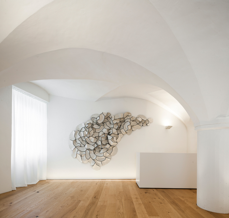 Die außergewöhnliche Atmosphäre des gesamten Büros wird zusätzlich noch durch eine interessante Sammlung an verschiedenen Kunstobjekten wie Malereien und Skulpturen bekannter Künstler verstärkt. In Kooperation mit der Galerie Cyprian Brenner wurden zahlreiche Exponate sorgfältig ausgewählt und an jeweils passender Stelle im gesamten Büro platziert. So wird der Besucher schon beim Eintreten durch eine Skulptur in Form einer jungen Dame aus Terrakotta, in Lebensgröße „empfangen“.