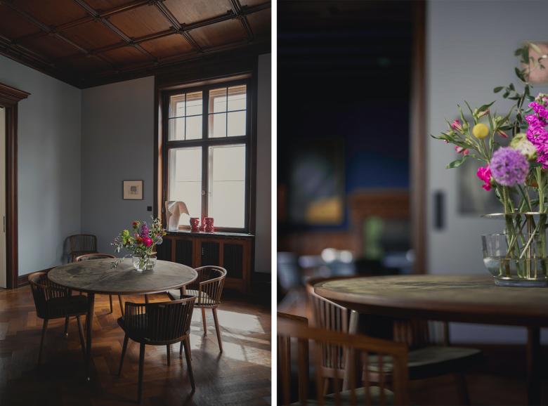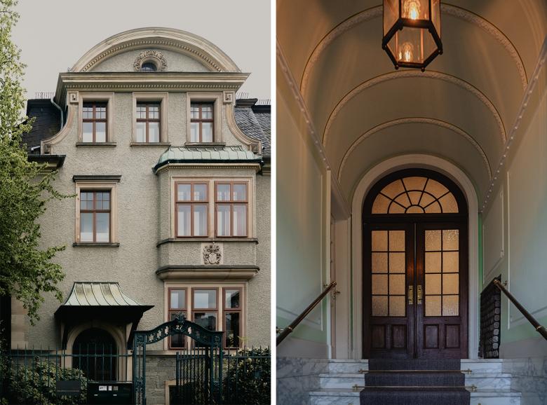 South of the River Main, in the Sachsenhausen district of Frankfurt, is the site of the old Villa Passavant - the new location of our Frankfurt office. The Wilhelminian-style villa, which was designed by the architect Alfred Christian Günther in 1908, is surrounded by museums, villas and the Metzlerpark, which is open to the public. An extensive garden with mature trees lines the historic building, which impresses with its almost 4 metre high, stucco-decorated ceilings and round arches. Wood-panelled walls and ceilings, floor-to-ceiling wooden doors and herringbone parquet flooring create a unique spatial experience.