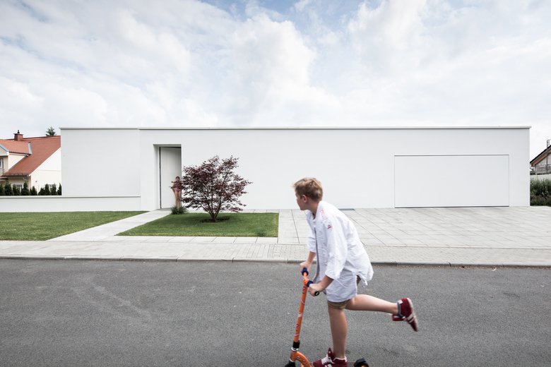 Auf einem leicht abfallenden Eckgrundstück in einer gewachsenen Siedlung bei Frankfurt am Main sollte ein Wohnhaus entstehen, das der Bauherrenfamilie sowohl ein Maximum an Privatsphäre als auch ein Höchstmaß an Offenheit bietet. Als „Los Angeles Loft-Feeling“ bezeichnete die Bauherrin ihren Traum vom angestrebten Wohnambiente gepaart mit dem Wunsch nach einem größtmöglichen Raumerlebnis.