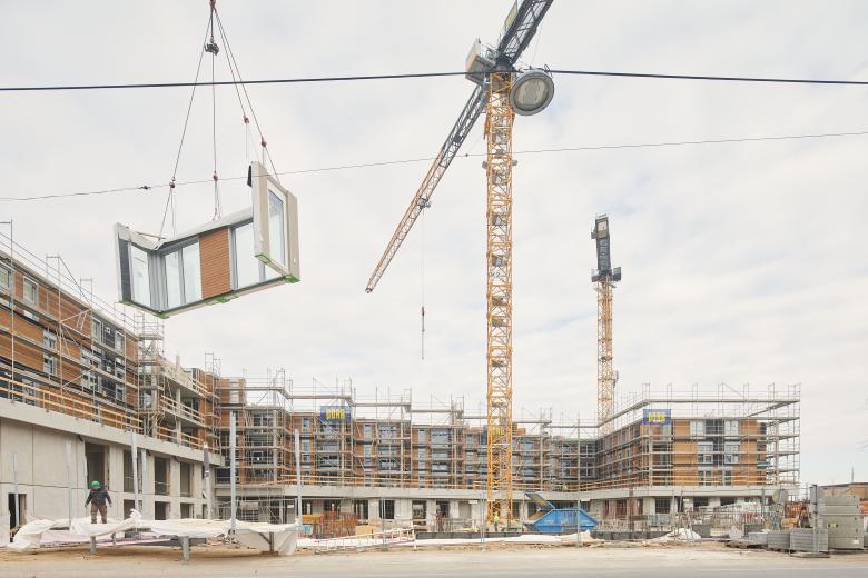Dem Wohnmodul liegt ein übergeordnetes orthogonales Rastermaß von 3.20m zugrunde. Die konsequente Umsetzung dieses Rasters ermöglicht eine hohe Wirtschaftlichkeit in der Umsetzung und große Ersparnisse in Logistik und Materialeinsatz. Zugleich ermöglichen die Skelettbauweise und das Raster einen sehr hohen Freiheitgrad in der Grundrissgestaltung, in der Typenvielfalt sowie in der langfristigen Flexibilität der Wohnungen und des Gebäudes insgesamt.
