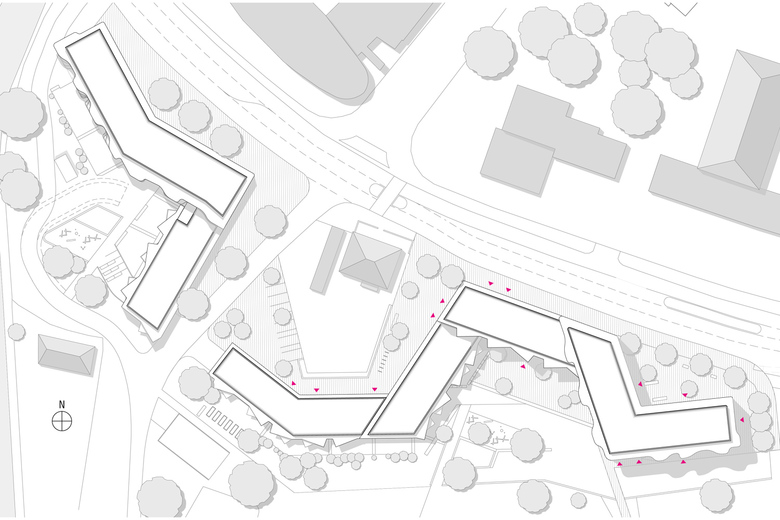 Unser Projekt ging 2012 als 2.platziertes Projekt eines geladenen Wettbewerbes hervor, ex aequo mit Martin Oberascher & Partner Architekten ZT GmbH. [MOA]. Nach vielen gemeinsamen Planungsworkshops und Denkphasen, Terminen und Besprechungen konnten wir schlussendlich 2016 in die Realisierungsphase gehen. Das Baufeld 01 wurde im Frühling 2018 fertiggestellt. Das ursprüngliche Konzept des Wettbewerbs blieb von der Geste her erhalten, obwohl das gebaute Ergebnis – wie immer im Planungs- und Bauprozess - von zahlreichen Einflüssen abhängig ist.