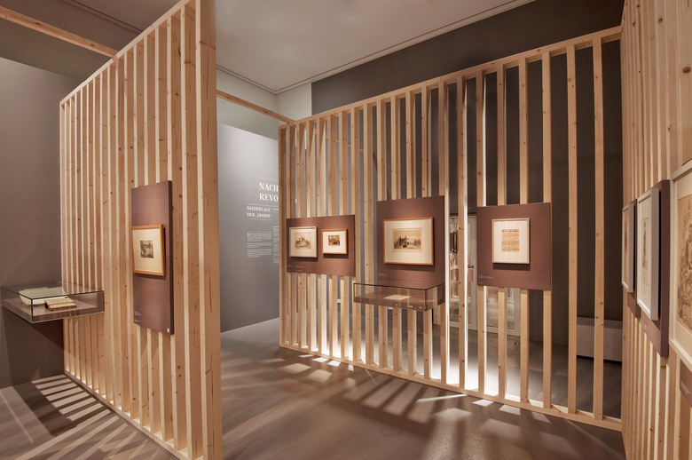 Die verschiedenen Ausstellungsräume erzählen vom aufstrebenden Unternehmertum und von dessen Kehrseite, der sich entwickelnden Klasse des Proletariats und ihren krassen sozialen Gegensätzen. Die Besucher erleben auf ihrem facettenreichen Rundgang Barrikadenkämpfe, sehen Revolutionen scheitern und deren Beteiligte ins Gefängnis oder Exil wandern.