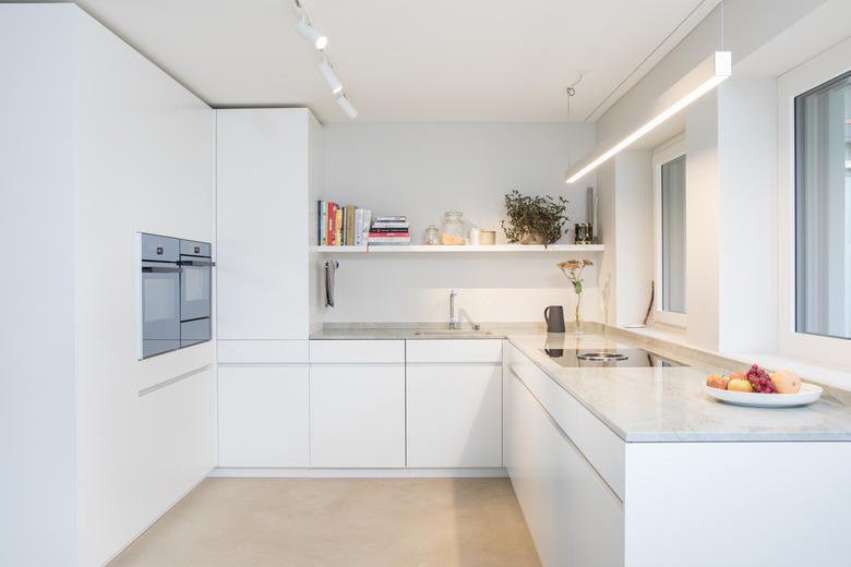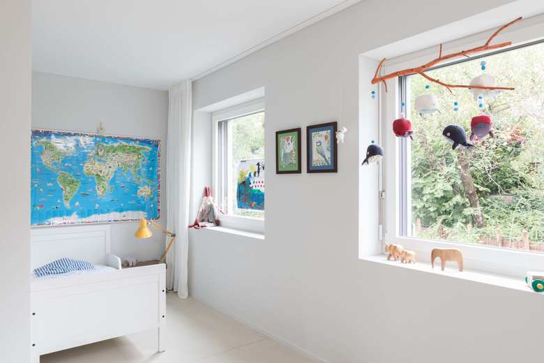 Das kleine Reiheneckhaus musste umfassend renoviert und energetisch optimiert werden. Mit neuer Fassadenisolation, Fenstern und einer Wärmepumpe wurde das Haus auf den neusten Stand der Technik gebracht. Im Innern galt es das Haus den aktuellen Bedürfnissen einer Familie anzupassen und zu modernisieren. Ziel war es, aus den beschränkten Quadratmetern eine Grosszügigkeit zu schaffen. Durch die Öffnung des Erdgeschosses bekam das ganze Haus einen offenen Charakter. Das Obergeschoss mit den Schlafräumen ist wieder kleinteilig aber gut ausgenützt gestaltet. Die Farbgebung ist bewusst zurückhaltend gehalten und die Wände sind in einem leichten Grauton gestrichen. So entsteht ein gutes, angenehmes Wohnklima