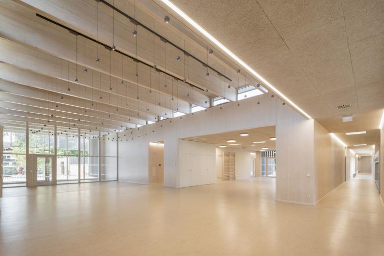 Durch den hohen Vorfertigungsgrad konnten die Brettsperrholz BBS Decken- und Wandelemente in kürzester Zeit verlegt und montiert werden. Die Untersichten und Wandansichten wurden teilweise in Sicht-Qualität gefertigt.