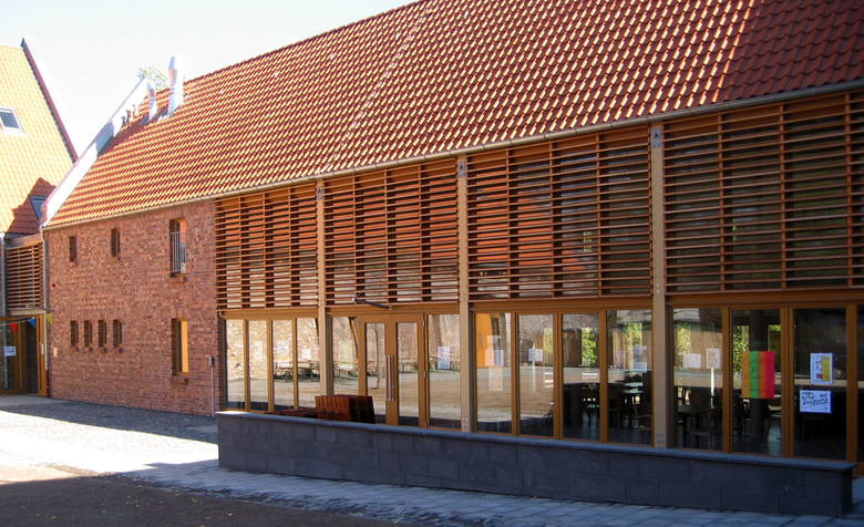 Die Hofanlage von 1749 steht unter Denkmalschutz. Der Hof wurde seit mehreren Jahrzehnten nicht genutzt. Scheune und Nebengebäude existierten nur noch als Ruinen. In Absprache mit der Denkmalpflege wurde das Hof-Ensemble als Bürgerzentrum wieder hergestellt, das Herrenhaus restauriert, Scheune und Nebenbauten in den historischen Gebäudevolumen und Giebelhöhen unter Verwendung noch vorhandener Aussenmauern neu errichtet. 1. Bauabschnitt:„Herrenhaus mit Anbau“(Eltern-Kind-Haus, Seniorentreff, Familienfeierraum). 2. Bauabschnitt:„Scheune“ (Veranstaltungssaal mit Foyer, Bar und Anrichte, Musik-Disco-Feierraum, Proberäume, Jugendräume) 3. Bauabschnitt:„Ersatz für ehem. Stallgebäude “(Bistro/Restaurant mit Biergarten) 4. Bauabschnitt:„Wirtschaftsgebäude“ist als Ruine nur baulich gesichert worden. Das Nutzungskonzept für den Umbau und die Erweiterung wurde in einem Werkstattverfahren mit Vertretern der Initiative Altenberger Hof erarbeitet. Die Ausführung der Rohbau- und baulichen Ausbauarbei¬ten erfolgte weitgehend durch Beschäftigungsträger.