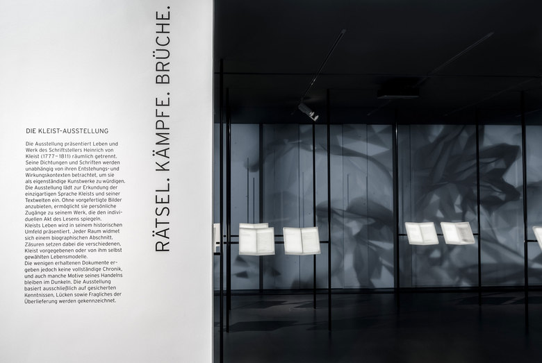 Das Kleist-Museum Frankfurt/Oder ist das weltweit einzige Museum, das ausschließlich Leben, Werk und Wirkung Heinrich von Kleists gewidmet ist. Kleists Biographie entfaltet sich im zeitgeschichtlichen Kontext in den Räumen des Altbaus, einer denkmalgeschützten Garnisonsschule von 1777; das zeitlose Werk wird, losgelöst von seiner Biographie, in den Räumen des 2013 fertig gestellten Neubaus präsentiert. Die Darstellung des kleistschen Werkes beruht auf der Erkenntnis, dass Literatur erst im Leseprozess, in der Imagination des Einzelnen, entsteht. Literatur – letztlich unsichtbar und damit unausstellbar – lässt sich nur unzureichend anhand von Büchern, Manuskripten und Rezeptionszeugnissen darstellen. Literatur muss auf einer sinnlichen, emotionalen Ebene erfahren und erlebt werden, die die Vorstellungskraft des Rezipienten miteinbezieht. Ein eigener Raum ist hierbei den Besonderheiten der kleistschen Sprache gewidmet, deren komplexe Textarchitekturen die auf illuminierten Buchobjekten graphisch decodiert und nachvollziehbar gemacht werden. Die im Sprache-Raum bereits anklingende Stangenarchitektur verdichtet sich im Werk-Raum zu einer labyrinthischen Rauminstallation, welche die Brechungen, Widersprüche und Irrwege von Kleists Dichtung in der Ambivalenz von Ordnung und Auflösung versinnbildlicht. Eine Soundebene aus atmosphärischen Klängen und gesprochenen Zitaten, die der Besucher im Stangenwald selbst auslöst, beflügeln die Imagination auf akustische Weise. ARGE mit Panatom