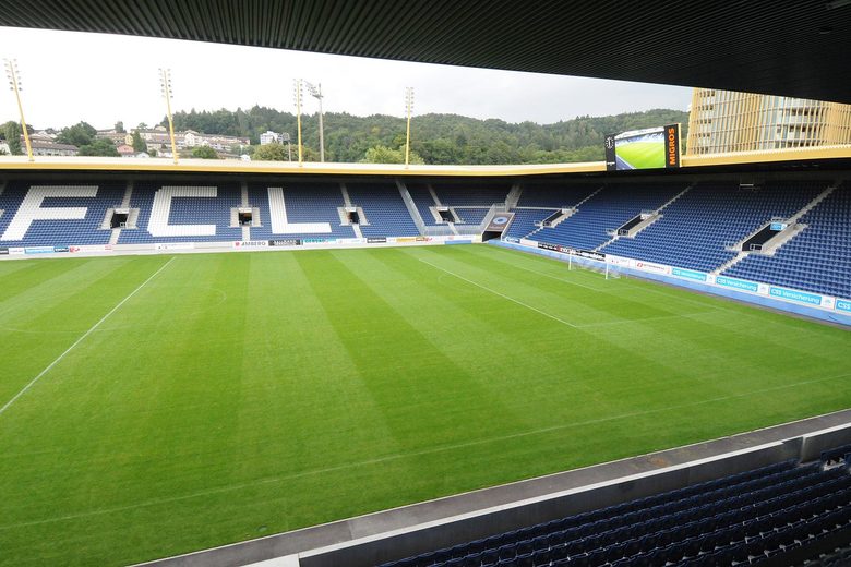 Die Tragkonstruktion des Stadiondaches besteht aus 22 m weit auskragende radial im Abstand von 20 bis 22 m angeordnete Fachwerkträger aus Stahl. Zwischen den Hauptträgern spannen Fachwerkpfetten. Die Hauptträger liegen gegen das Stadioninnere auf dreieckförmigen Betonscheiben und einer schlanken Zug- bzw. Druckstütze in der Fassadenebene auf. Über die Wandscheibe im Erdgeschoss und den Fundamentriegel werden die beiden Auflagerpunkte des Dachkragträgers verbunden, um in den Baugrund einzuleitende Zugkräfte zu vermeiden. Die Unterkonstruktion der Tribüne sowie das VIP-Logen-Bauwerk werden in Ortbeton erstellt. Die Tribünenränge bestehen aus vorfabrizierten Betonelementen. Schwimmende Rammpfähle tragen die Gebäudelast in den Baugrund ab.