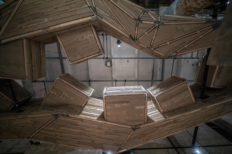The exhibition was selected by the curator, Lesley Lokko, as part of The Laboratory of the Future. Conceived as a co-living workshop, the exhibition invites visitors to ponder in a courtyard which is shaped by a suspended wood-structure mock-up.