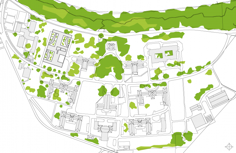 Neubau von drei Stationen für Forensische Therapie für die Psychiatrische Universitätsklinik Zürich in Neu-Rheinau. Neu-Rheinau ist im Bundesinventar der schützenswerten Ortsbilder von nationaler Bedeutung ISOS aufgeführt.