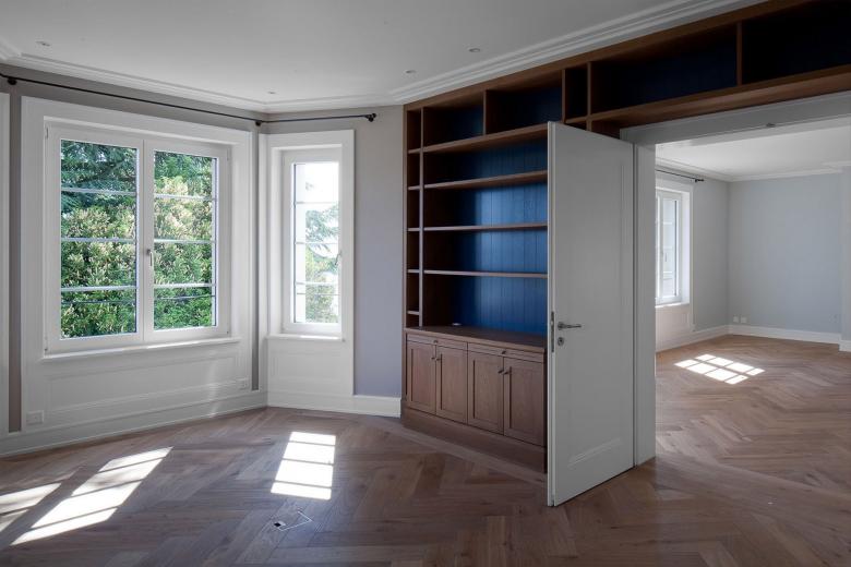CONTEMPORARY CLASSICAL MANSION is located in a prestigious area close to Lake Geneva on a plot of 2500.00 m². The mansion is nestled in a beautiful and leafy surrounding. With a living space over three floors, the mansion features ten bedrooms and sev¬en bathrooms including en-suite wellness areas. A highlight is the noble staircase in the inner courtyard which is flooded with abundant daylight through the skylight window. The mansion is also equipped with a garage with the parking capacity for four cars, and a large outdoor garden area including pergola and pool. More at https://www.studioforma.ch/architecture-projects/residential/contemporary-classical-mansion