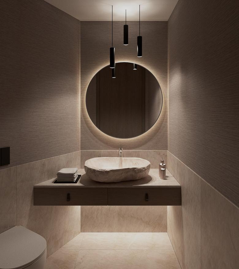 Die Verwendung von Naturstein, Beton und warmem Holz schafft eine taktile, authentische Atmosphäre. Licht und Schatten modellieren die Räume je nach Tageszeit – ein subtil choreografiertes Zusammenspiel von Raum und Natur.