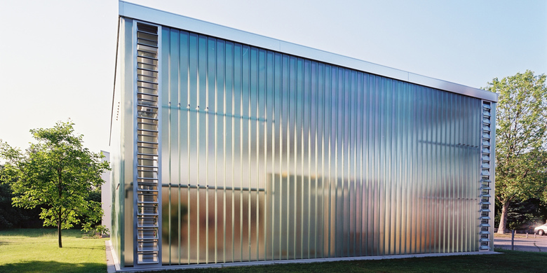 Hier ist eine unkonventionelle, aber äußerst reizvolle moderne Kirche entstanden, die zu jeder Tages- und Jahreszeit durch die semitransparente Fassade eine eigene Wirkung hat. Auch die Akustik ist gut, obendrein war es mit 430.000 Euro Gesamtkosten eine ausgesprochen preiswerte Lösung.