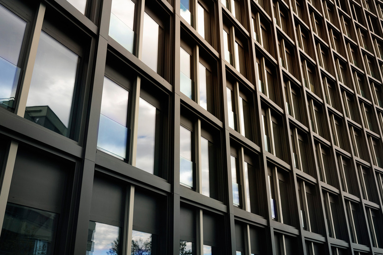 Der Ceres Tower steht mit einem "breiten Fuss" am Boden, bildet auf 21 Metern auf der Höhe der benachbarten Gebäude eine erste Traufe aus und wächst weiter in konkaver, expressionistischer Form bis zu einer auskragenden Krone. Mit der Gliederung in Sockel, Schaft und Attika knüpft die Architektur des Ceres Towers an klassische Vorbilder wie das Rockefeller-Center an. Die metallische Fassadenverkleidung der Stützen und Geschossdecken ist in einem dunklen Bronzeton gehalten und erinnert an die ursprüngliche Tradition der örtlichen Guss-Industrie. Der Charakter des langestreckten Gebäudevolumen von Ceres Living wird durch eine horizontale Gliederung der Fassaden noch verstärkt. Die Bänder sind in einem dunklen und einem helleren Grauton mit Grünabtönung gehalten. Als Kontrapunkt sind die Untersichten der Balkone in einen leuchtendem gelb hervorgehoben.