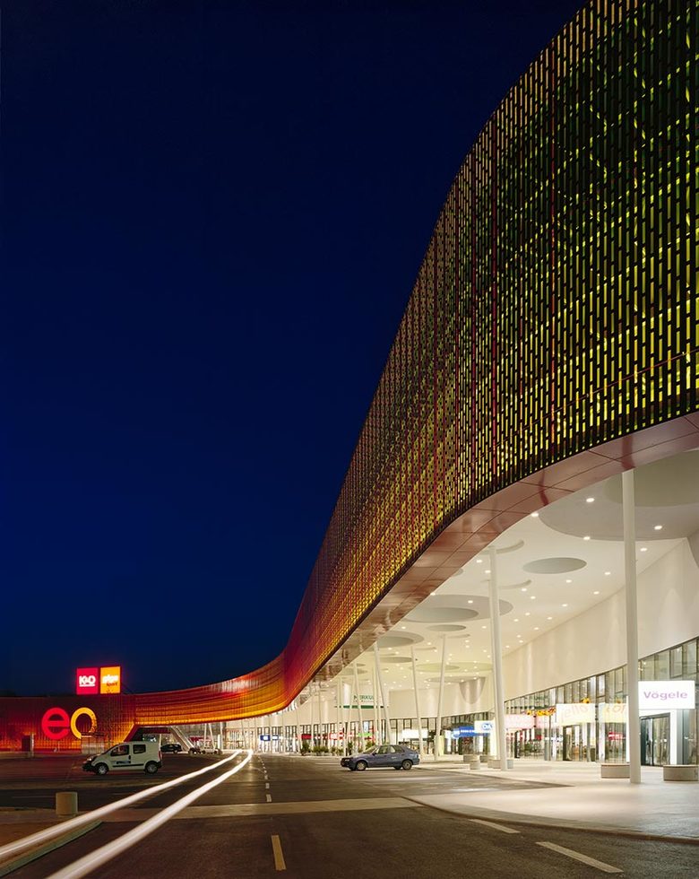 "Offer on the inside, what you promise on the outside" - another founding idea of the concept. A promise the building makes to the region as a shopping magnet. The design language is modern, diversified and dynamic in every aspect. This is clearly reflected in the way movement networks were planned throughout the property. The colour range confidently adapts to different moods and seasons. The distinctive form and colour of the facade turn it into a landmark - increasing its effectiveness and appeal as a shopping magnet. The manifold depths of the facade mirror the diversity which can be found on the inside.