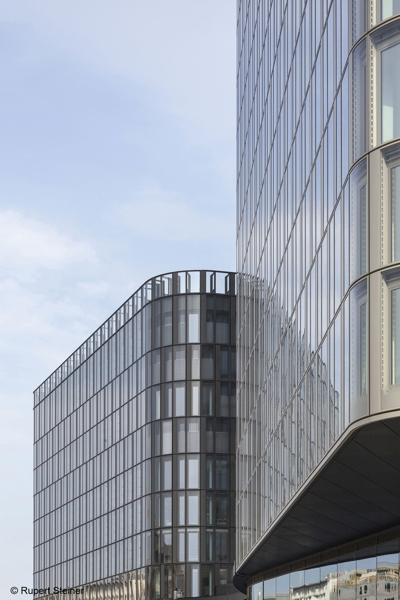 The complex comprises three high-rise office towers joined by a common plinth. The three buildings appear individual but complement one another and communicate with the neighbouring facilities. The project plays a trailblazing role in the urban fabric and impresses with clarity and accuracy in the orientation of the three high-rise buildings as well as with the articulation of the facades. With its soft shapes, the trio enables an easy flow of visitors between the towers and through the district. Rather than functioning as an individual structure, The Icon Vienna opens up to the city and carefully unites the existing buildings in the Belvedere district.