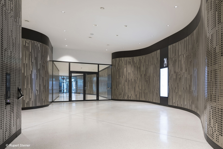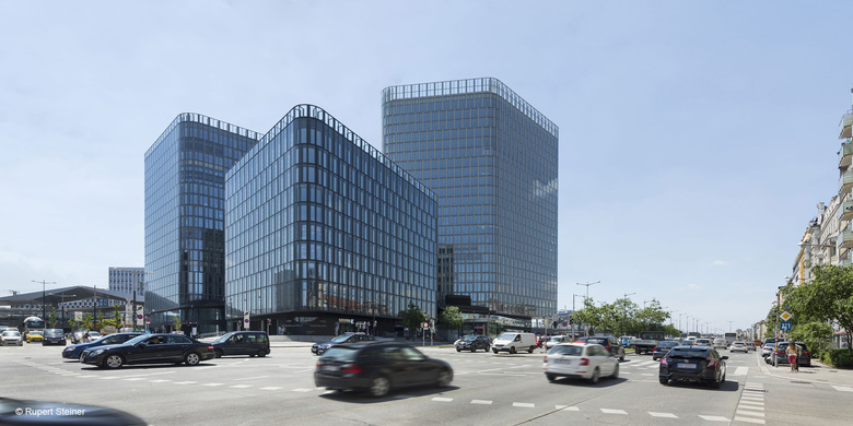 Behind a generous glass facade, high quality office spaces for about 5,700 employees have been created on approximately 87,000 square metres of rental space. Thanks to their exceptional flexibility and the optimum use of space, the buildings are suited to various uses and office layouts precisely to tenants’ needs, be it open plan or closed offices. The three office towers provide breathtaking, panoramic views of the city of Vienna through the floor-to-ceiling windows. The tallest of the towers reaches a height of 88 metres.