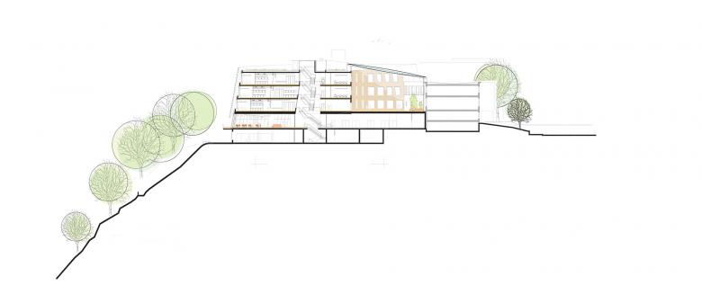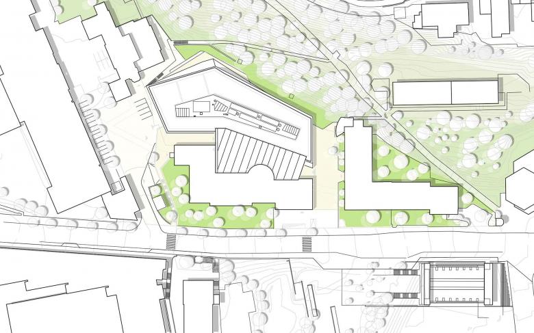 Connecting the most diverse requirements into an extremely heterogeneous and tight urban fabric places great demands on the architectural and programmatic concept. The decision to link to an existing building on the one side while creating a harmonious transition to nature on the other, informs the building’s structure without adversely affecting the site’s existing programmatic functions. Spatial qualities, directly perceived through daylight, proportion, and materiality, are equally visible in public areas and in the highly technical laboratories.
