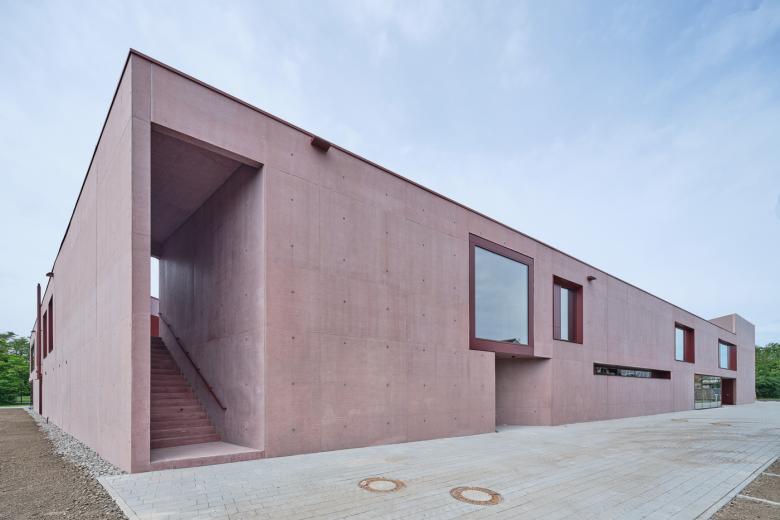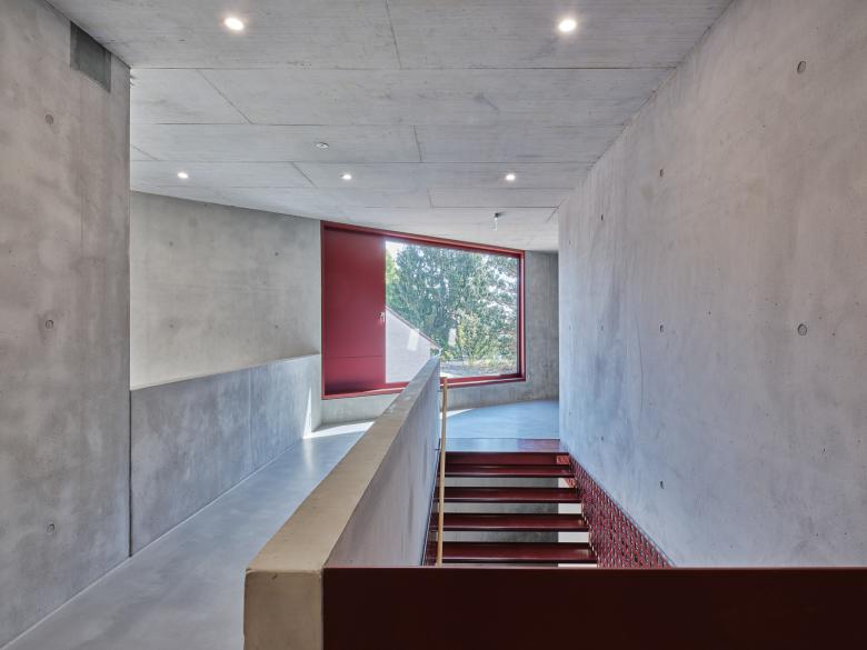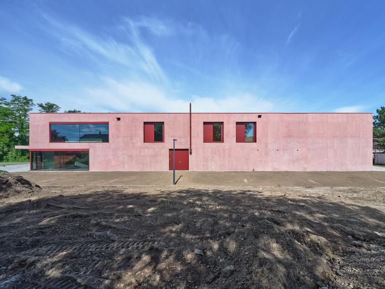 Der Entwurf nimmt die Gegebenheiten des Ortes auf, indem er die Form des Grundstückes auf das Gebäude überträgt. Es entsteht ein 2-geschossiges kompaktes, funktionales Gebäude aus Feuerwehr und DRK, das als Einheit auch der Nachhaltigkeit dient. Durch das eindeutige Zuordnen der Aussenflächen zu den jeweiligen Funktionsbereichen wird ein sicherer und nutzungsorientierter Ablauf angestrebt, welcher sich ins Innere des Gebäude weiterzieht.