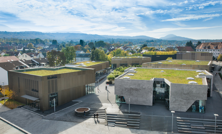 Der Fabrikverkauf als Motor der Stadterneuerung: Mit der Entwicklung des modernen Ensembles von Flagship-Outlets im Schwenkel-Areal als Erweiterung der Outletcity fand die Revitalisierung einer der letzten Industriebrachen in der Innenstadt statt. Das Ensemble vermittelt zwischen den großmaßstäblichen Outlet-Gebäuden im Norden und der kleinteiligen, heterogenen Wohnbebauung im Westen und Osten: die als Quader geformten Baukörper ordnen sich in den städtebaulichen Kontext ein. Sie sind locker um eine großzügige Gründfläche gruppiert, die mit ihren Bambushainen, Schotter- und Wasserflächen zum Flanieren und Verweilen einlädt.