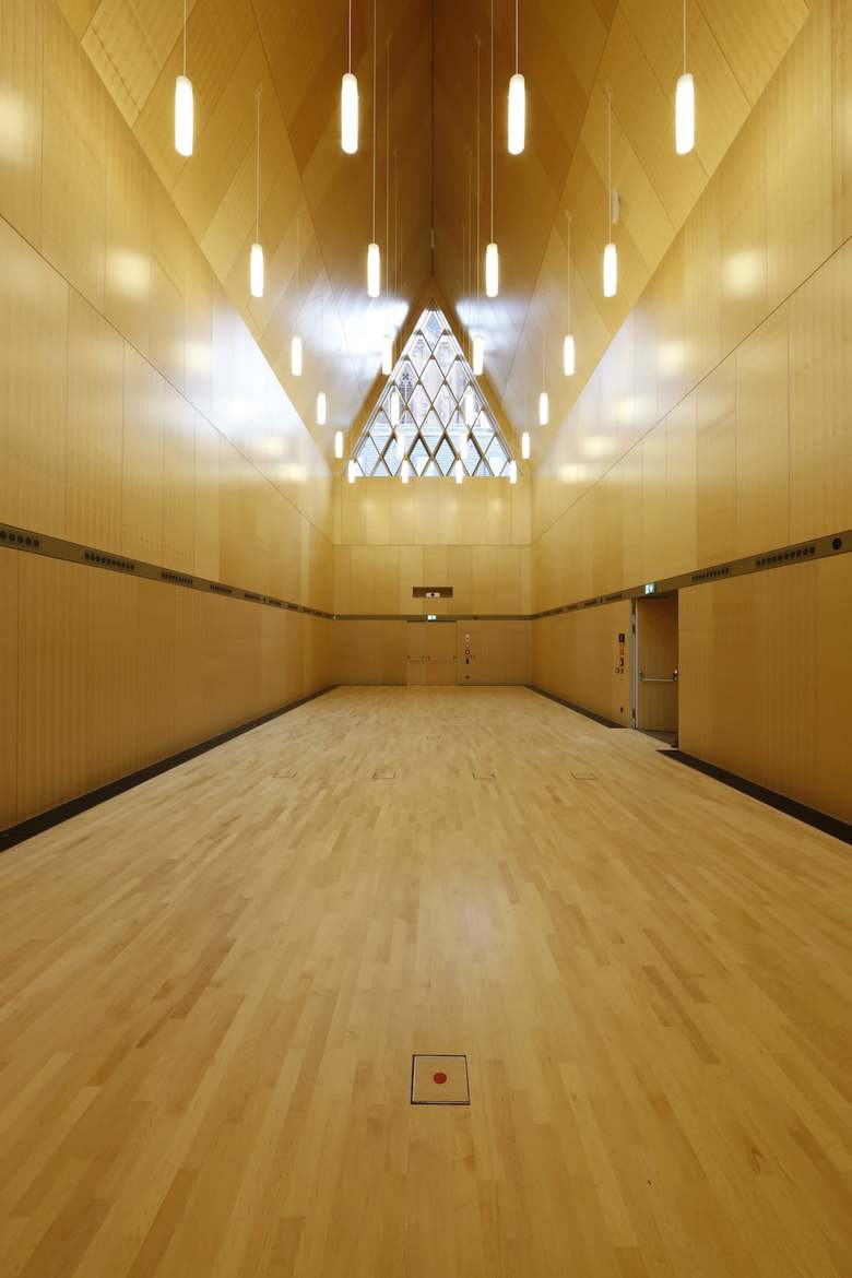 The project also contains a multi-purpose hall as well as several spaces for public events and apartments