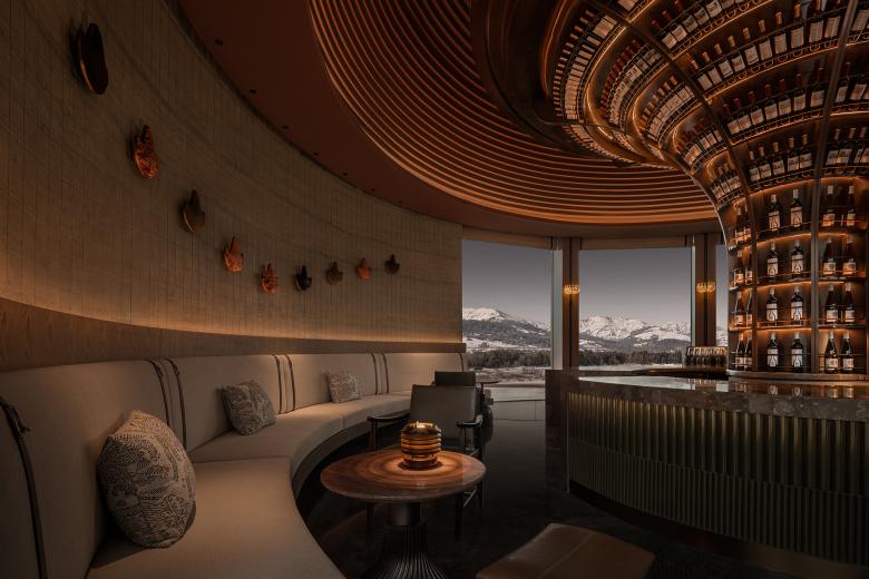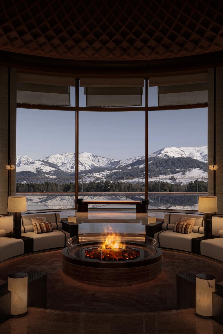 The journey begins in pursuit of light. Inspired by the Nalati sunrise, the hotel’s entrance features a curved canopy that evokes radiating sunbeams. Greeted with a traditional Aul-style welcome, guests are immediately immersed in an atmosphere rich with local culture.