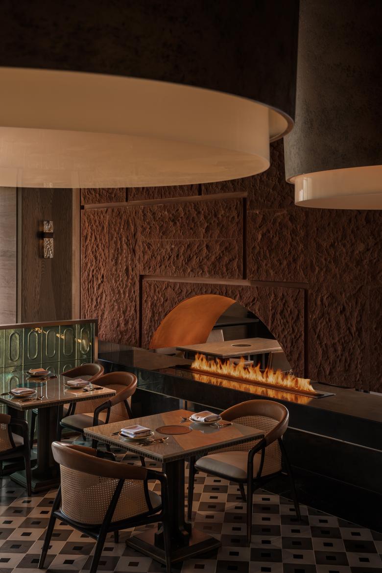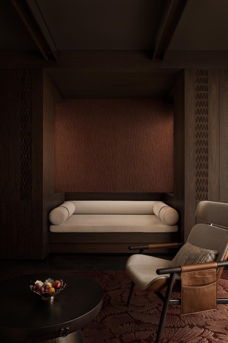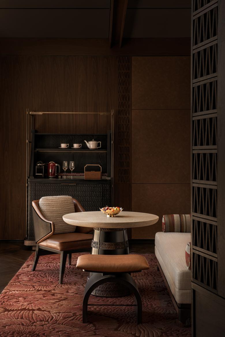In nomadic culture, the hearth is the heart of the home—a source of warmth, light, nourishment, and shared stories. Here, the traditional fire pit is reimagined as a modern fireplace installation and spatial centerpiece. Seating around it evokes the sense of courtyard gatherings on the grasslands, where nomadic families and friends gather in shared warmth. Whether sitting alone with a book or engaging in a quiet conversation, guests feel a grounded calm in the gentle embrace of the steppe.