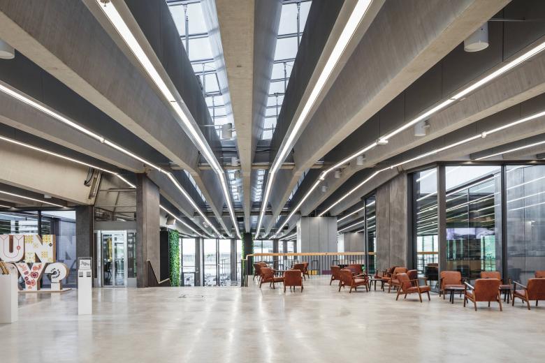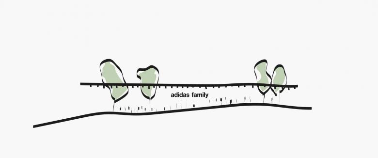 All of Adidas under one roof. The new building, named HALFTIME, was designed by COBE and totals 15,500 square meters. In addition to a canteen for all HQ employees, the building contains meeting rooms, a conference center and a showroom where the company’s high-profile brand ambassadors can stop by to see the latest new designs, collections, and ideas. The flexible and multi-functional architectural design makes it possible to transform and modify the building for varying purposes.