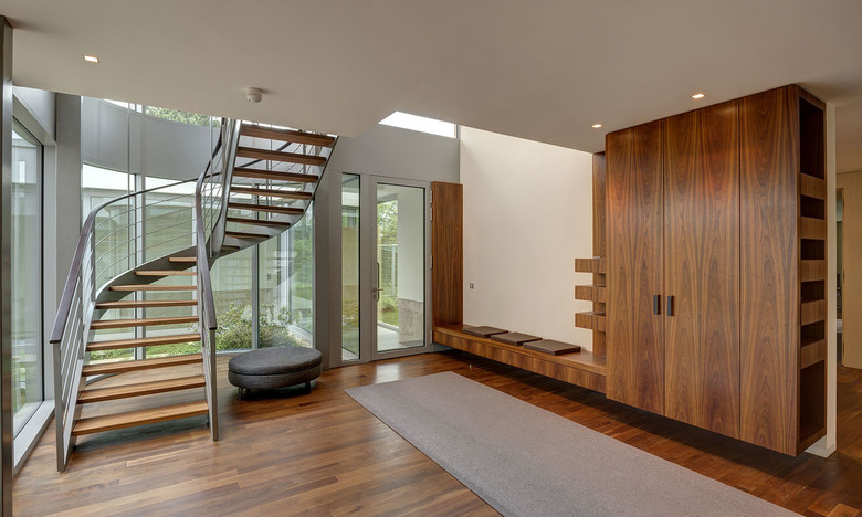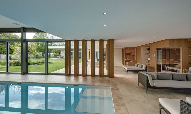 The limitation of using just a few materials such as oak and walnut, Bauhaus travertine and white plaster, which both can be used outside and inside and with the exception of plaster, for walls and floors, accomplish the villa and garden to be unified into a harmonious ensemble.