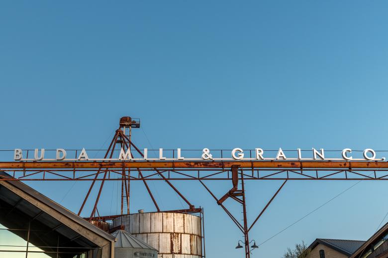 Once dotted with dilapidated metal sheds, silos, and a cotton gin dating to 1914, historic Buda Mill & Grain Co. in the Texas Hill Country is finding new life as a multifaceted, community-focused destination. Firmly entrenched in Buda’s history for over 100 years, the redeveloped site now offers more than 27,000 square feet of retail, restaurants, and community-oriented spaces that bring locals and visitors together within a vibrant setting. The complex is composed of five structures—a mix of old and new—including a renovated 105-year-old cotton gin building, a large, renovated steel equipment shed, a historic elevated grain augur, four vintage silos, and three new buildings. The challenge was how to preserve the bones of what was there while making the existing structures and new facilities a cohesive complex.