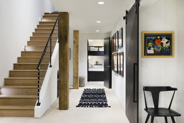 With the steep topography at the back of the lot and incredible views all around, ordinarily the house would have been situated in the center, impacting a large field where deer and elk come to feed. Instead, the family chose to leave the field natural and untouched. The home was tucked into the far side of the lot with minimal disruption to the site, creating a beautiful foreground as you approach the house. The family’s daughter named the residence after the deer and elk co-habitants.