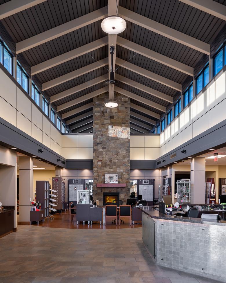 Glacier Eye Clinic is a 29,000 sq. ft. building composed on a naturally sloping site, oriented to take full advantage of the views of Glacier National Park. The grand lobby was designed to capture an abundance of natural light and create a focal point and main entry that serves as a wayfinding destination throughout the large facility.
